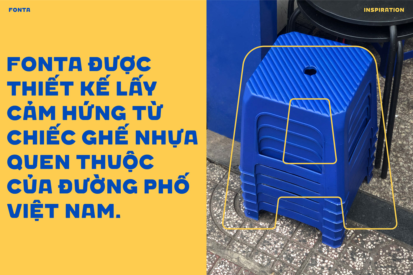 Featuring the chair and Vietnamese diacritical marks, we has developed a custom font named after Guta, FONTA (our font),The font is only for the extension of Guta child brands and special communication tools. After their success on rebranding, Guta has been growing from several stores to nearly 60 stores around the city and opened new child brands like PHỞTA (Phở noodle) or CHỢTA (convenient local store).