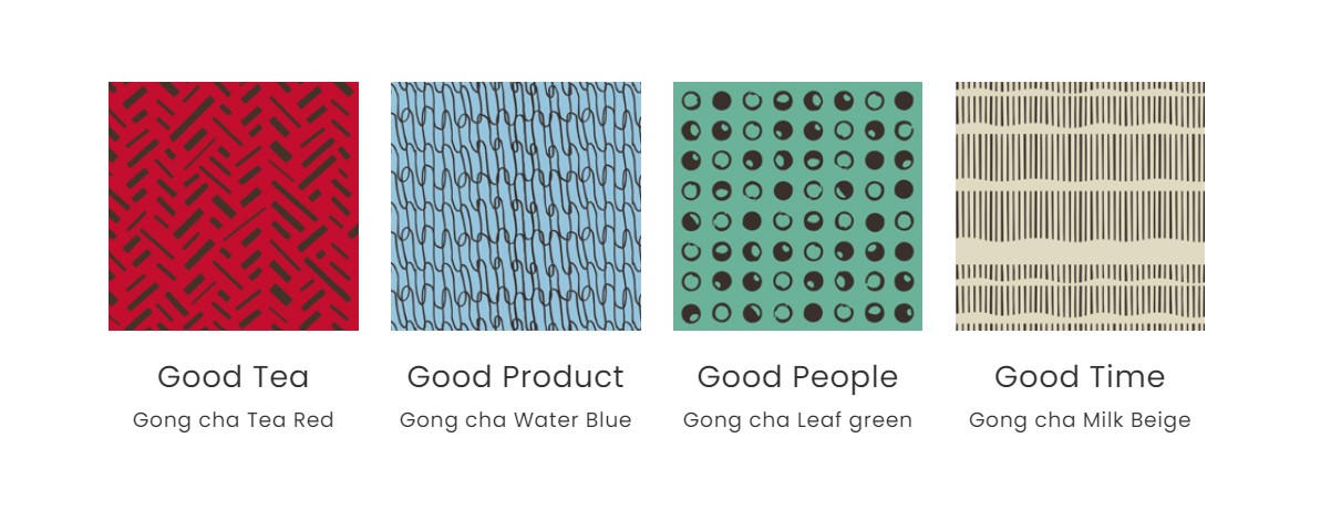 The four components that make up excellent tea have been reduced into patterns, resulting in representations of Gong cha that may be utilized for a variety of purposes.